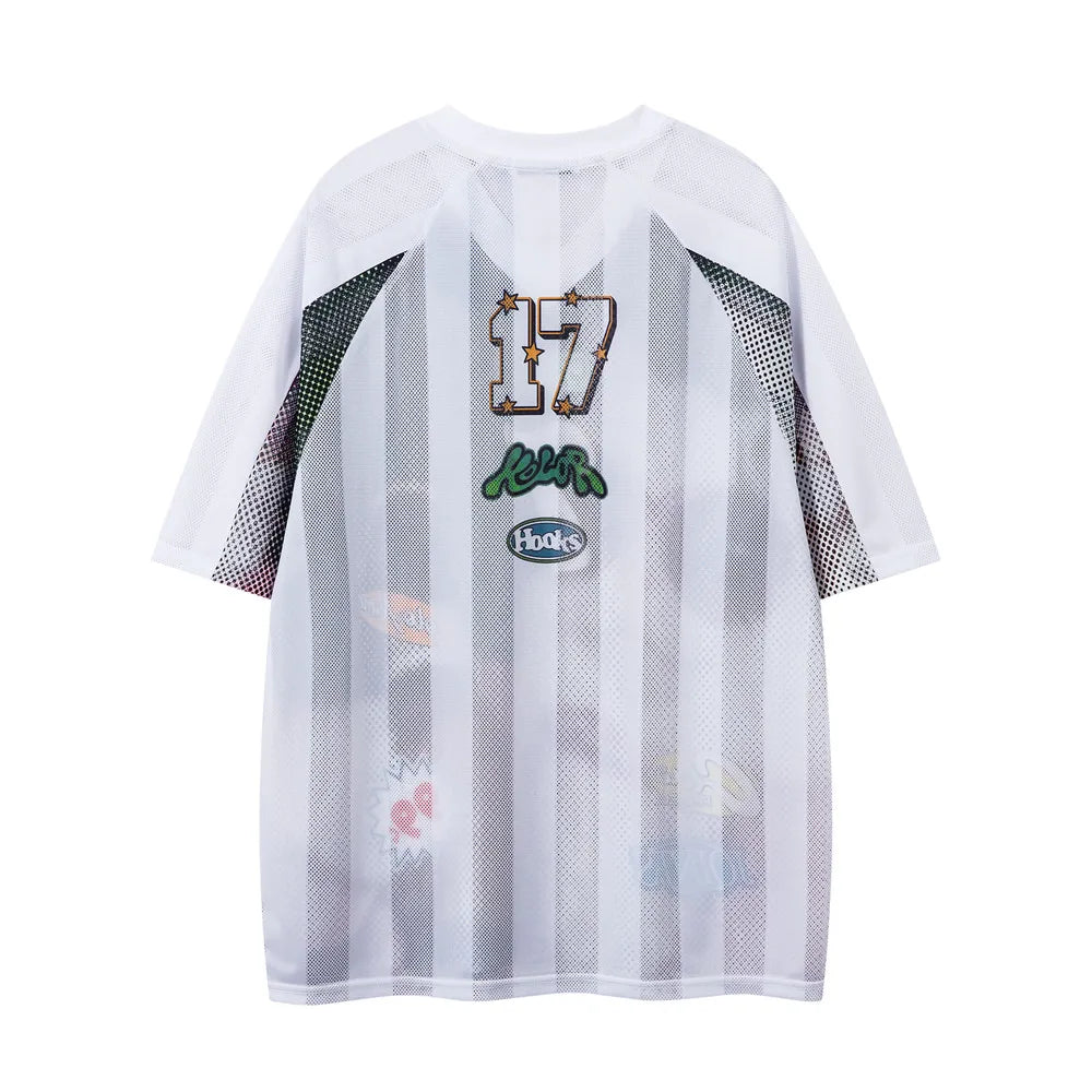Cat Print Short Sleeve T-shirt Mens Summer Retro High Street Loose Raglan Half-Sleeve V-neck Breathable Mesh Tshirt Men